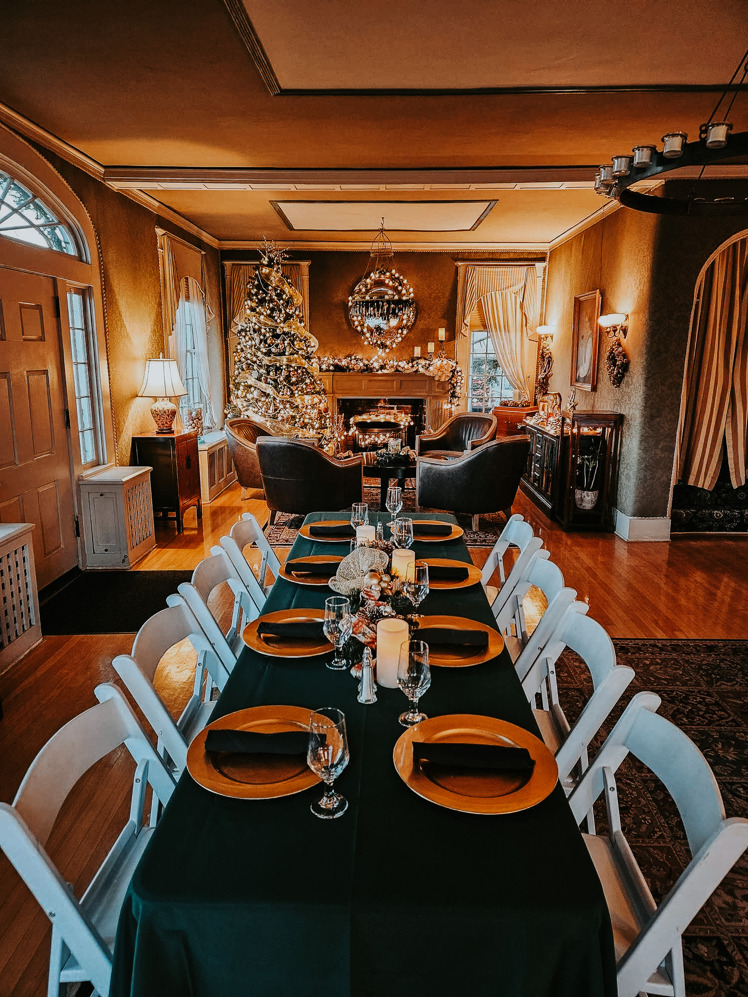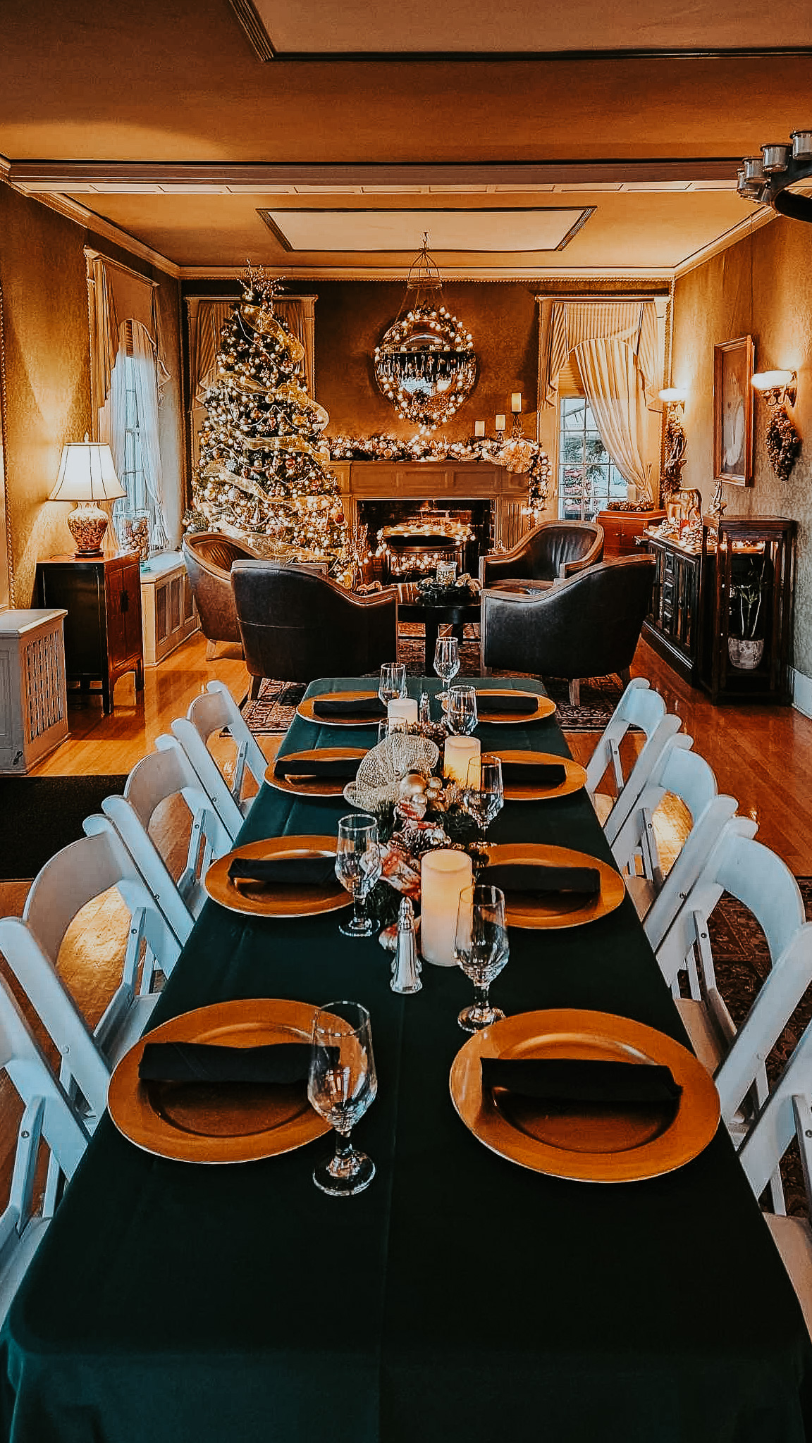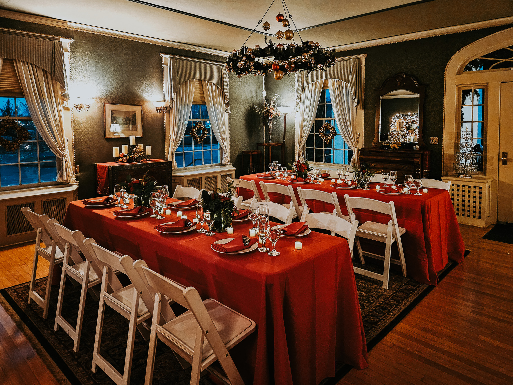 Every year, our Historic Mansion is transformed with traditional holiday décor! We invite you to enjoy along with us, and take advantage of this festive and inviting atmosphere. With the warm glow of multiple fireplaces and a Christmas tree in every room, your event will be warm and welcoming to all who gather here.